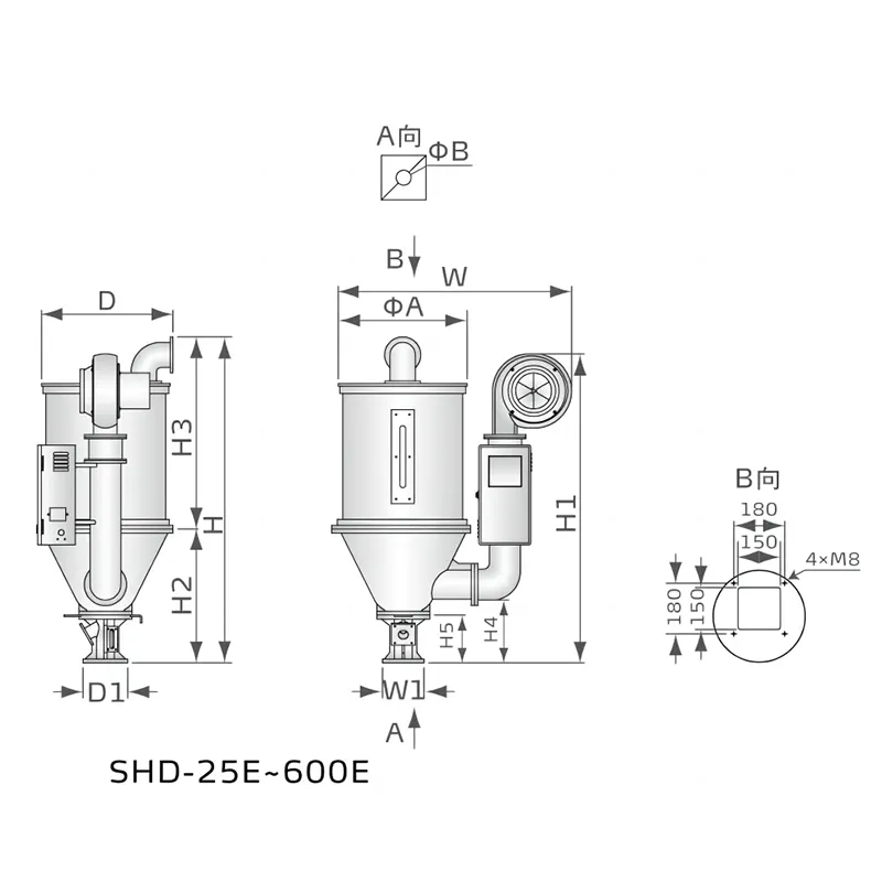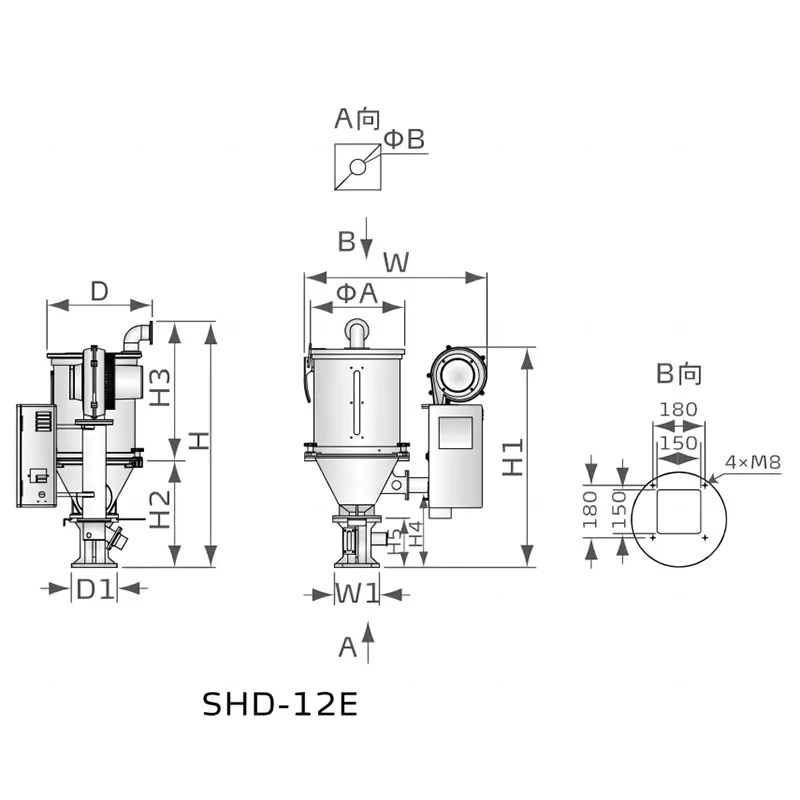 SHD-Eホッパードライヤーはプラスチック補助設備として、PS、PP、ABSなどほとんどの非吸湿性樹脂の乾燥に使用でき、最高乾燥温度は160℃です。 この熱風乾燥機は機能性を向上させるいくつかのオプション機能を備えています。例えば熱風を再利用するシステム、原料から鉄粉などの不純物の濾過するシステム、床置き用スタンドなどをご用意しています。