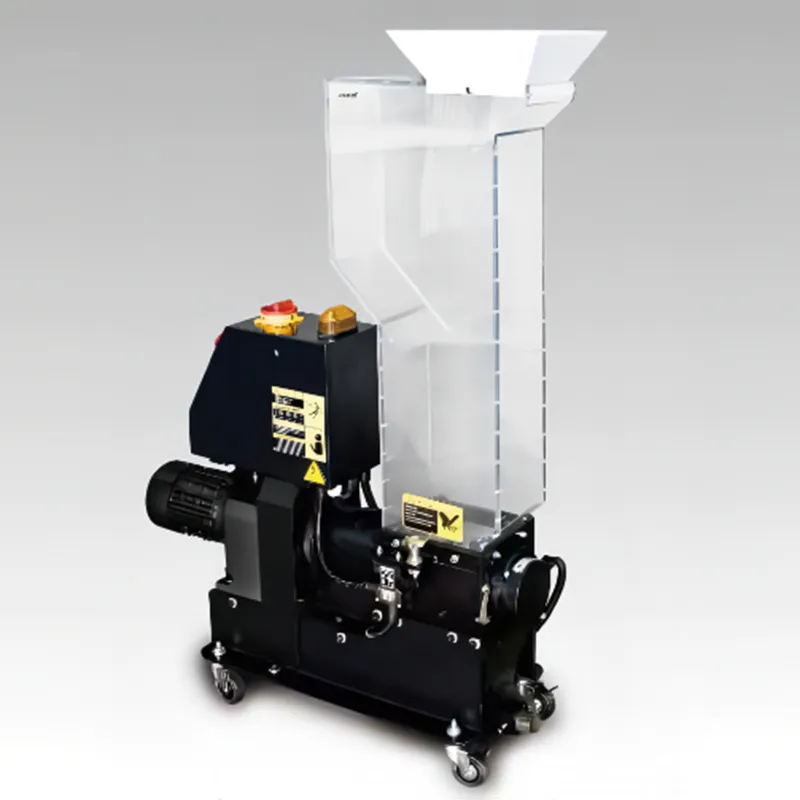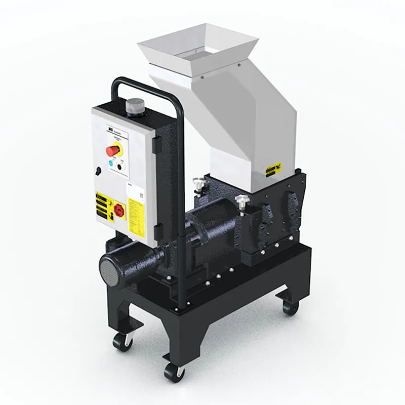 SG-2427Nスクリーンレス構造粉砕機は、処理効率が高いだけでなく、メンテナンスが容易で安全な運転が可能であり、コストパフォーマンスを追求したスタンダードモデル粉砕機です。プレスや射出ブロー成形工程で使用でき、粉砕された粉砕物は、直ちに製造プロセスに再投入することができます。