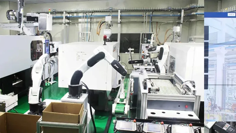 イーサネット接続を利用することで、この統合システムは、射出成形機のインターフェースからすべての接続機器の監視と管理を可能にします。このシームレスな統合により、製造プロセス全体のリアルタイムな概要が提供され、効率が大幅に向上し、機器管理が改善されます